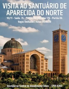 Dia 10/11 a Diretoria Feminina promoverá Romaria à Aparecida. Saída às 7h – Portão 06. Retorno às 17h.
